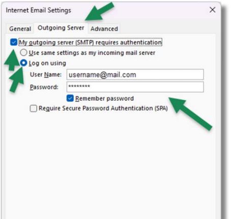 1. I feltet "Brugernavn" skal du indsætte den bruger-e-mail, du har lavet i SMTP-kontoopsætningen.
