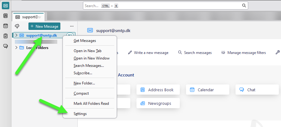 Åbn Thunderbird og højreklik på den konto du vil bruge sammen med SMTP.dk